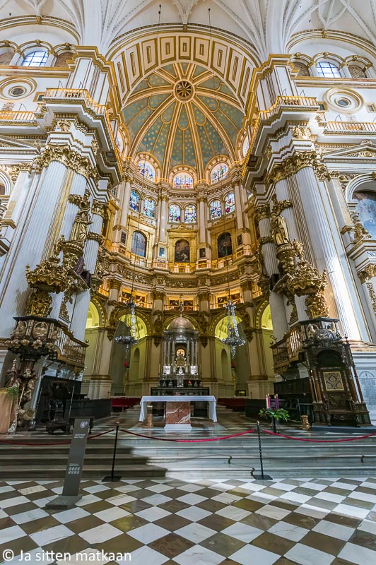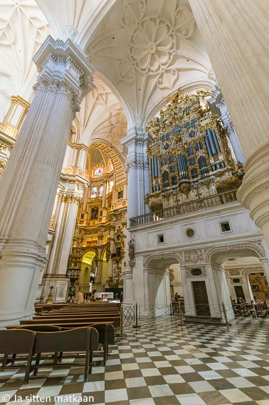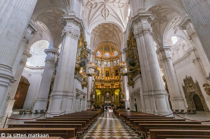 Granadan ykkösnähtävyys on tietysti Alhambran palatsi ja kaupungin katedraali jää tämän vuoksi monelta vierailijalta näkemättä. Suosittelen silti tutustumaan myös tähän puoleen Granadasta. Samalla voi pysähtyä hetkeksi läheiselle Bib-Ramblan aukiolle ja nauttia herkullisia churroja yhdessä kaupungin vanhimmista kahviloista Gran Cafe Bib-Ramblassa.