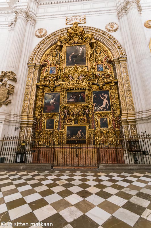 Pääalttari sijaitsee avoimen rotundan keskellä. Tämän aikansa espanjalaiskirkkojen tyypillisestä suunnitelmasta poikkeava ratkaisu toi seurakunnan lähemmäs messua johtavaa pappia, mikä olikin Granadan ensimmäisen arkkipiispan toiveena. Alttarin taide kuvastaa voimakkaasti kristinuskon voittokulkua muslimien hallitsemassa Iberiassa. Alttarin alkuperäisessä suunnitelmassa se oli tarkoitus koristella valtavalla määrällä kuvia pyhimyksistä ja raamatun kohtauksista painotuksen ollessa Granadan kaupungin pyhässä historiassa. Rakennustöiden venyessä suunnitelmat ehtivät kuitenkin muuttua ja lopullinen pääalttari onkin yksinkertaisempi kokoelma renessanssi- ja barokkivaikutteita.