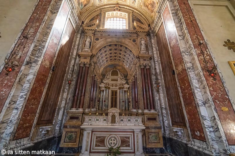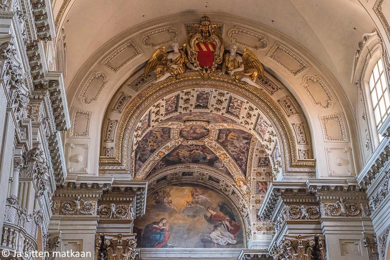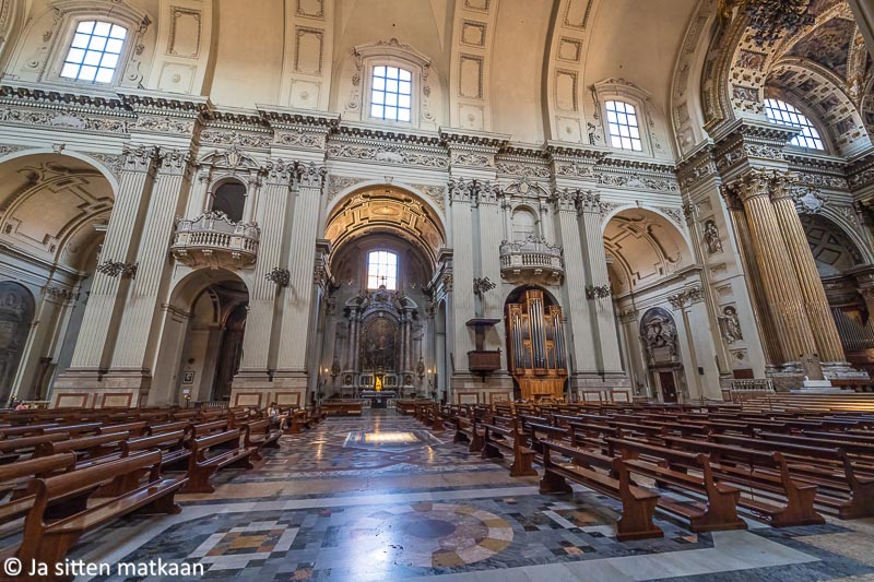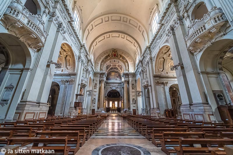 Meilläkään Bolognan katedraali ei ollut päässyt reissun tärppilistalle, sillä kirkosta ei ollut mitään mainintoja matkaopaskirjassa. Sitä ei myöskään löytynyt netistä lukemiltani Bolognan nähtävyyksiä listaavilta sivuilta. Onneksi kuitenkin bongasin katedraalin Googlen karttaa tutkiessani. Sisäpuolelta nähtynä katedraali oli mielestäni paljon mielenkiintoisempi ja kauniimpi kuin olisin osannut odottaa.