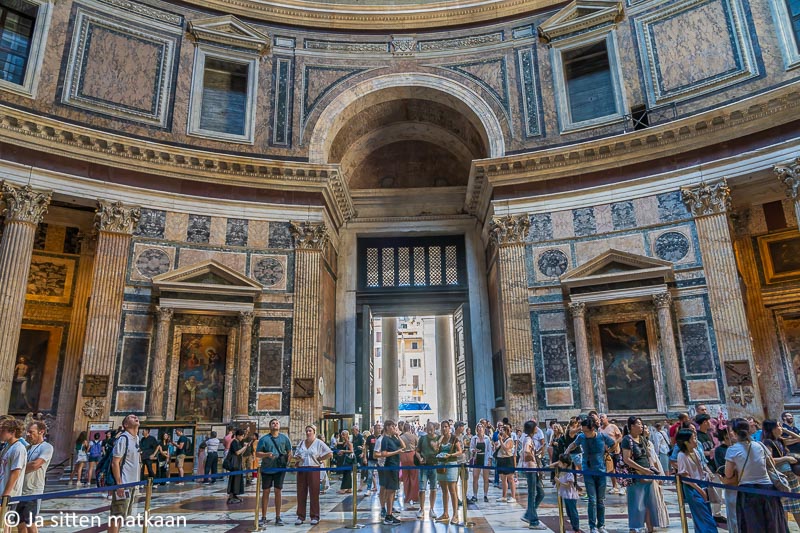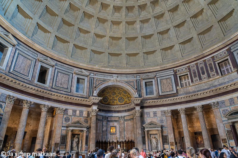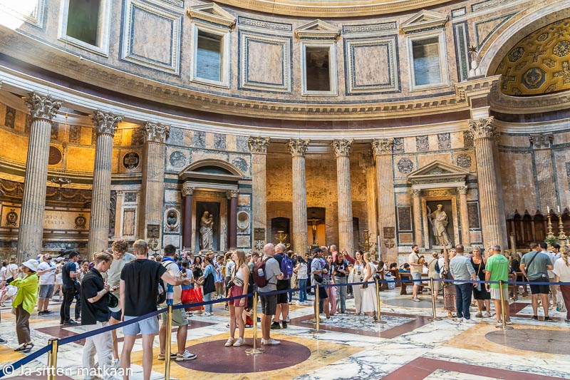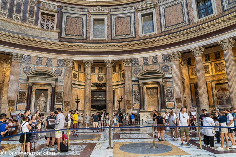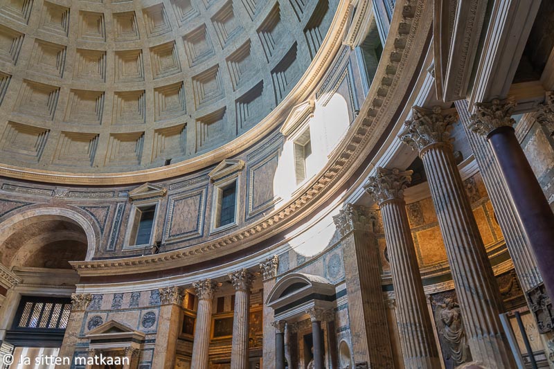 Pantheon on kyllä hieno ja pakollinen vierailukohde. Kaksi kertaa olen siellä itse käynyt, ja varmasti tulee käytyä jatkoakin. Itsekin siis selvästi syyllistyn Pantheonin vitsaukseen eli liikavierailuun.