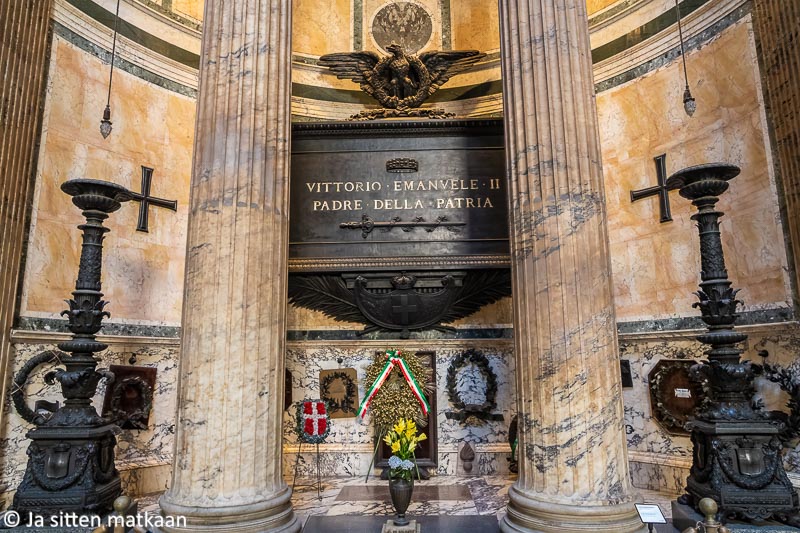 Kuninkaiden Viktor Emanuel II ja Umberto I varsin näyttäviä hautoja ei oikein voinut olla huomaamatta. Loputkin kuninkaat oli tarkoitus haudata samaan paikkaan, mutta viranomaiset eivät ole myöntäneet maanpaossa kuolleiden monarkkien hautaukselle lupaa. Monarkia kun oli ja meni jo.