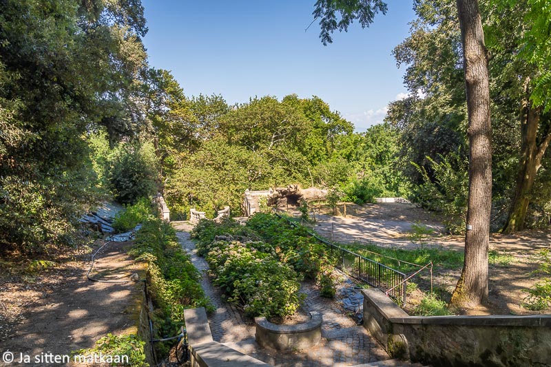 Meidän vierailumme aikana heinäkuussa puutarha oli pikkuisen kuivassa kunnossa, mikä ei siinä helteessä ollut suurikaan ihme. Varmasti parempi aika vierailulle on keväällä, jolloin monet puut ja puskat kukkivat. Tämä voinee olla myös mukavampi ajankohta monelle suomalaiselle lämpötilankin suhteen. Kesäisin Roomassa mennään useina päivinä yli 40 lämpöasteen.