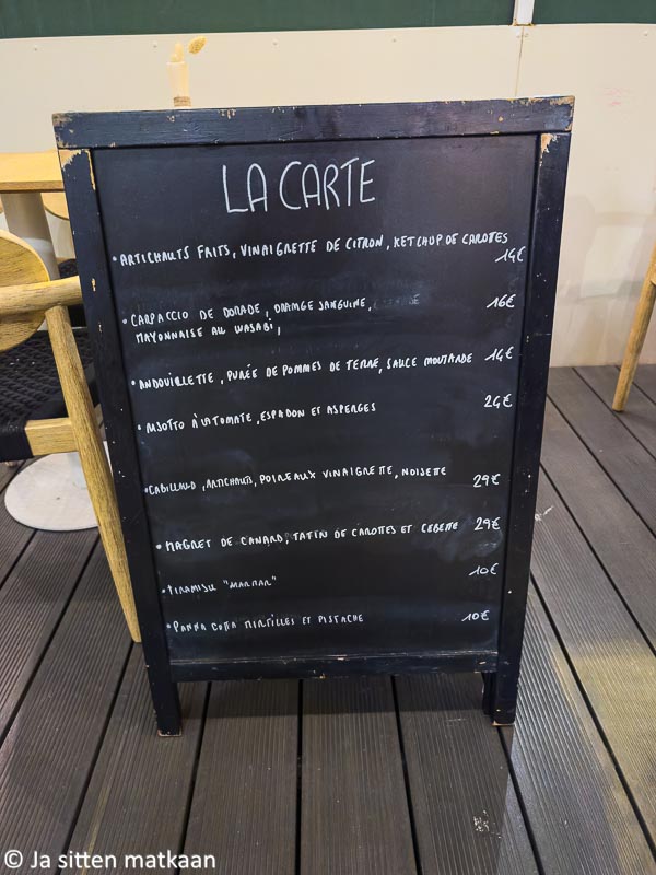 Varsinaiselle juhlaillalliselle valitsimme ennalta tuntemattoman ravintolan Les Agitateursin. Oikeastaan olisin halunnut juhlistaa vanhenemistani MARMARissa, mutta valitettavasti juhlapäivä osui sunnuntaille ja silloin kaikki tutut suosikkiravintolamme pitivät vapaata. Jäljelle jääneistä vaihtoehdoista Les Agitateursin nimeen olin törmännyt jo viime kesänä Michelinin Nizzan opasta silmäillessäni. Ravintolalla oli yksi tähti, joten kyllä siitä ainakin jonkun ruoasta jotain ymmärtävän on täytynyt tykätä.