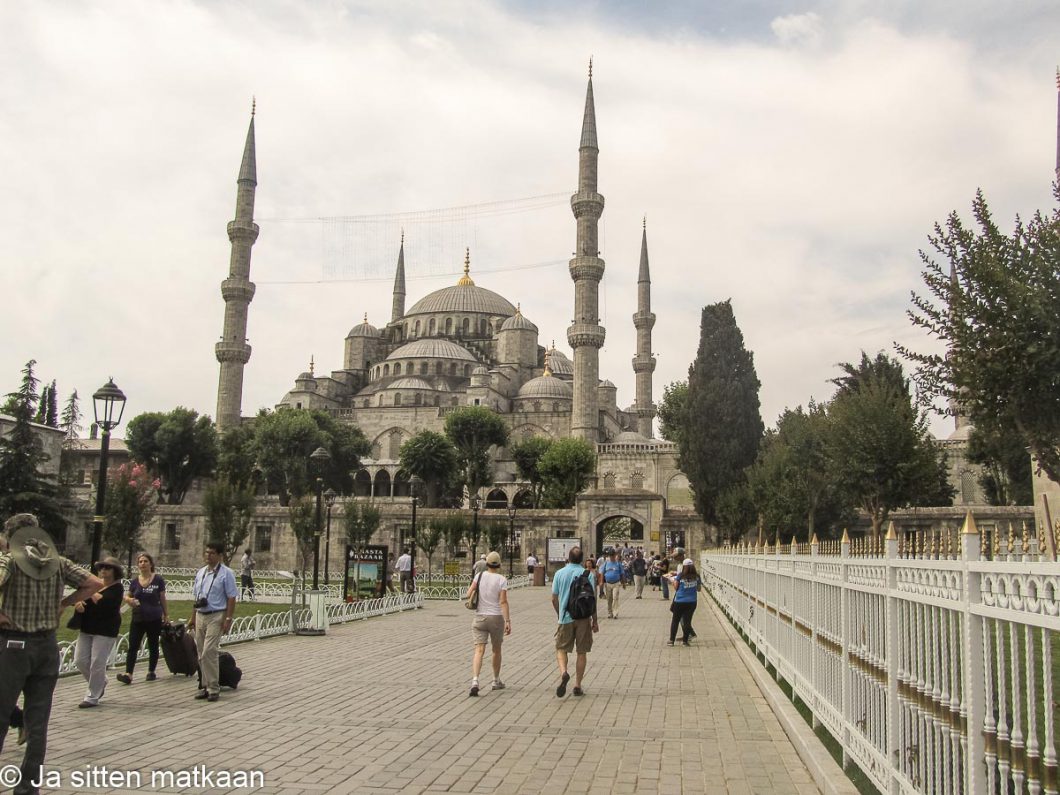 Vierailumme Turkin pääkaupungissa Istanbulissa oli meidän ensimmäinen kosketuksemme islamilaiseen maahan. Pitkin päivää kaupungilla kaikuviin rukouskutsuihin tottui nopeasti. Tokihan kaupungin upeissa moskeijoissa täytyi käydä tutustumiskäynneillä. Yksi hienoimmista ja tunnetuimmista on Sulttaani Ahmedin moskeija eli tuttavallisemmin Sininen…