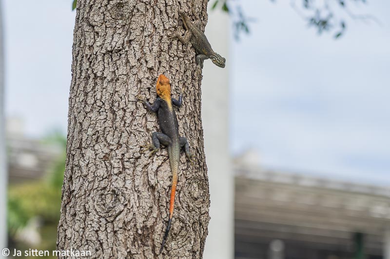 Miamin keskusta-alueen puistotkin osoittautuivat mainioiksi luontoretkikohteiksi. Aluksi bongailimme useampia erilaisia liskoja, jotka kipittivät karkuun poluilla tai köllöttelivät puiden rungoilla. Onnistuin nappaamaan niistä sen verran onnistuneita kuvia, että Googlen kuvahaku osasi kertoa niiden olevan eri agamalajien edustajia.