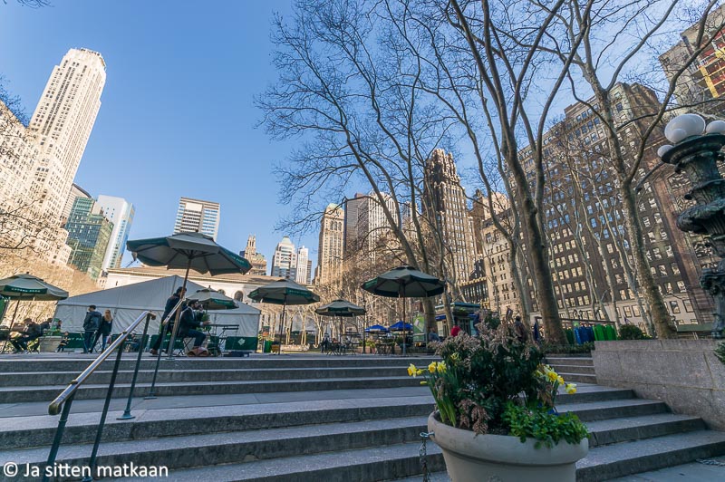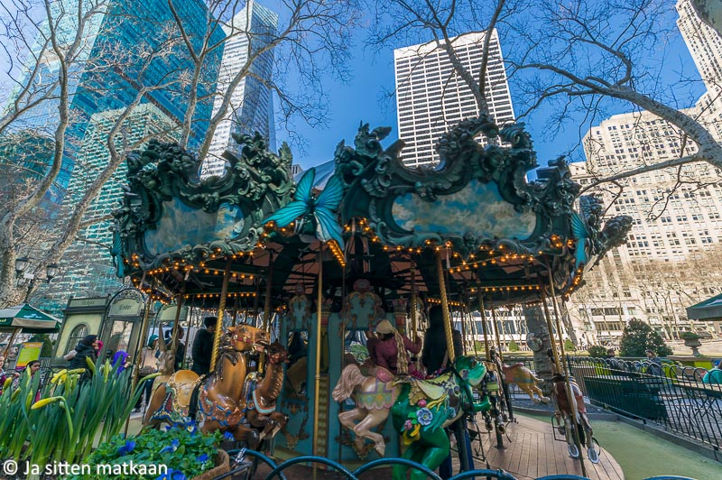 Bryant Park on kiva. Enpä ollut tajunnut, että 1900-luvun puolivälissä se oli jäänyt rappeutumaan. Onneksi se on sittemmin kunnostettu. Varmasti hieno myös talvikaudella ja muutenkin itse asiassa kaupungissa olisi hauska vierailla myös talvella.