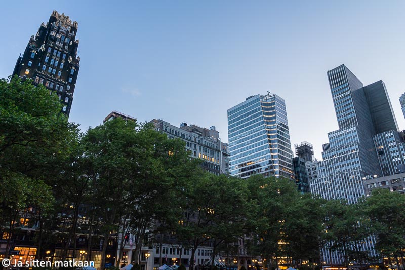 Olemme itse käyneet Bryant Parkissa todennäköisesti jokaisella New Yorkin vierailullamme. Majoitumme yleensä Midtownissa, joten puisto osuu reitillemme vähän väkisinkin. Ihan sen kulmilla sijaitsevat myös muutamat suosikkirakennuksemme, kuten upea Grand Central Terminal ja ehkä koko Manhattanin kaunein pilvenpiirtäjä, Chrysler Building.